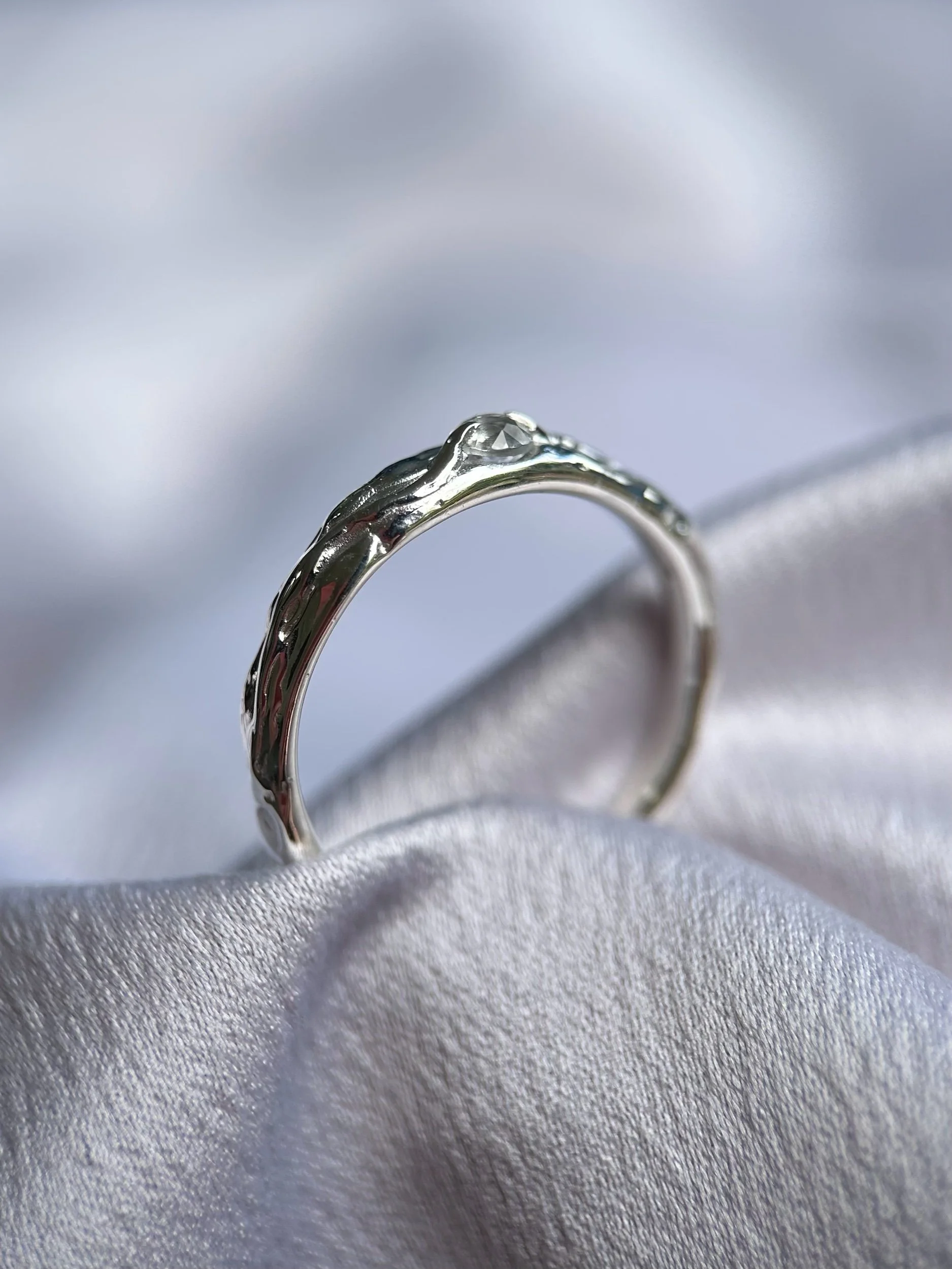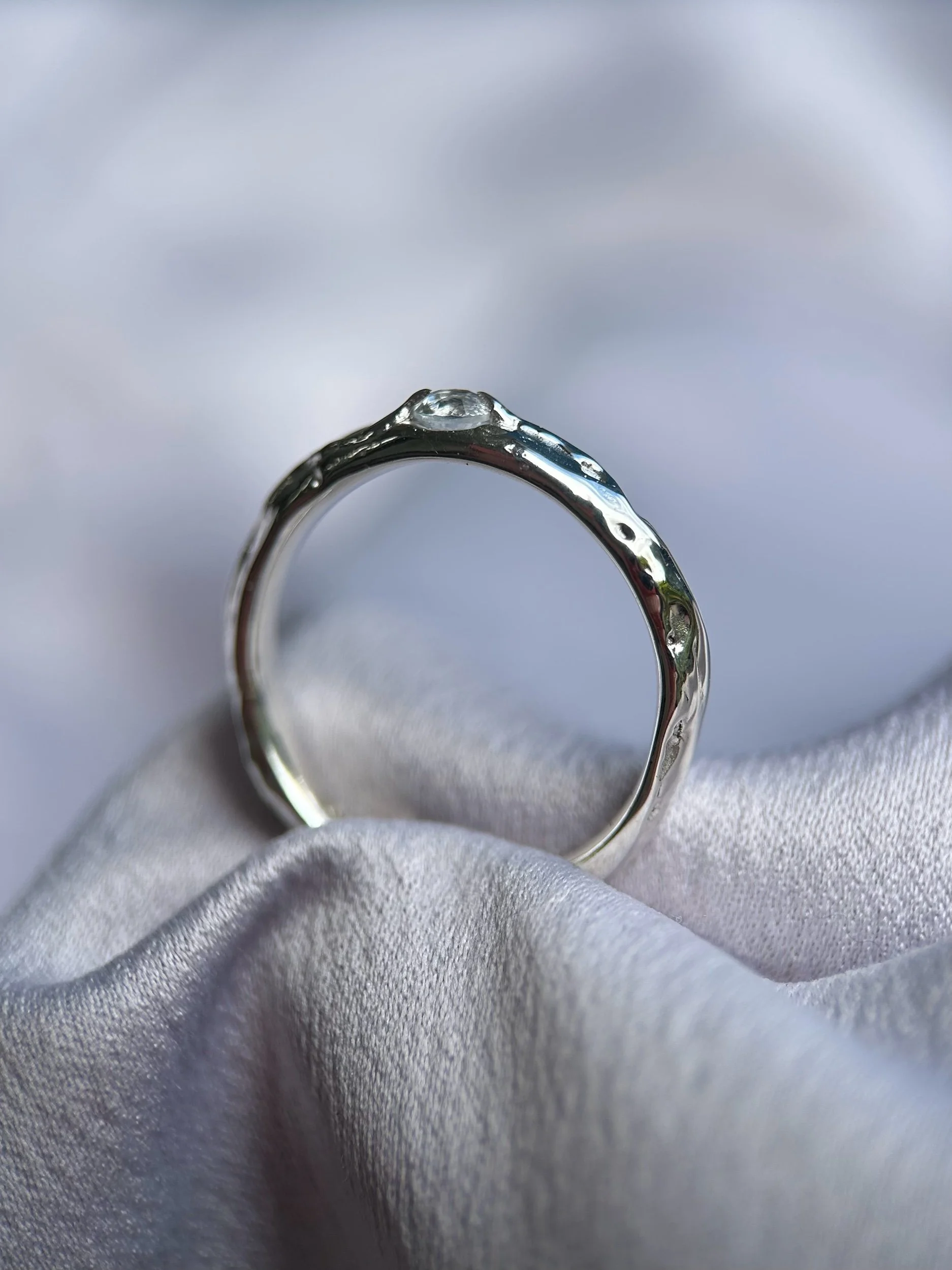 Tasmanian Killiecrankie diamond set into a solid 100% recycled sterling silver ring