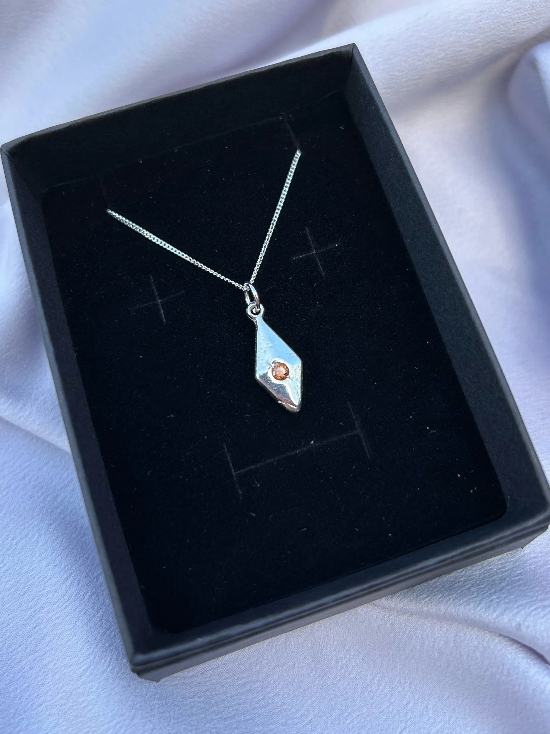 Tasmanian zircon set into a solid 100% recycled sterling silver pendant