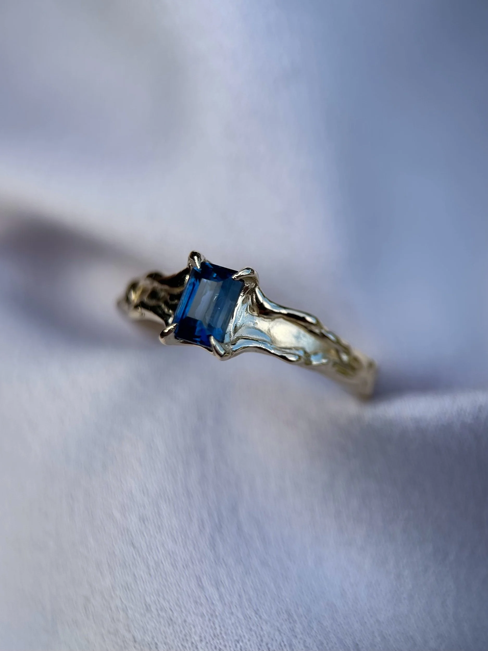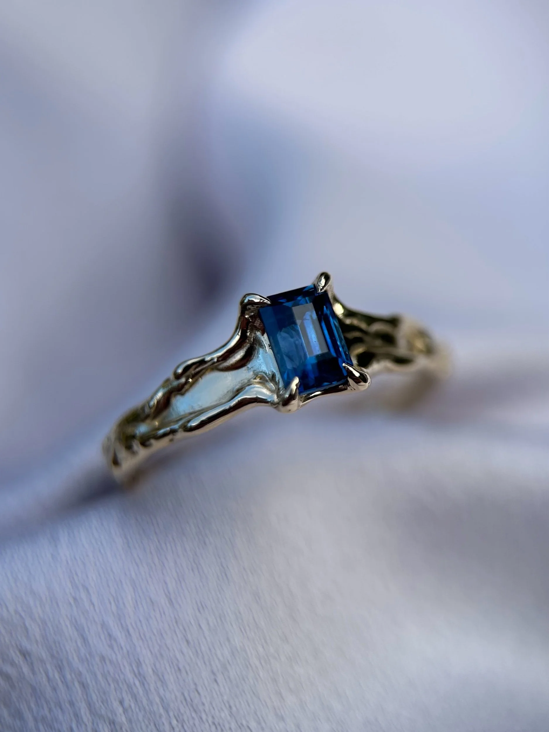 0.82ct untreated royal blue Tasmanian sapphire set into a solid 100% recycled 14ct yellow gold ring.