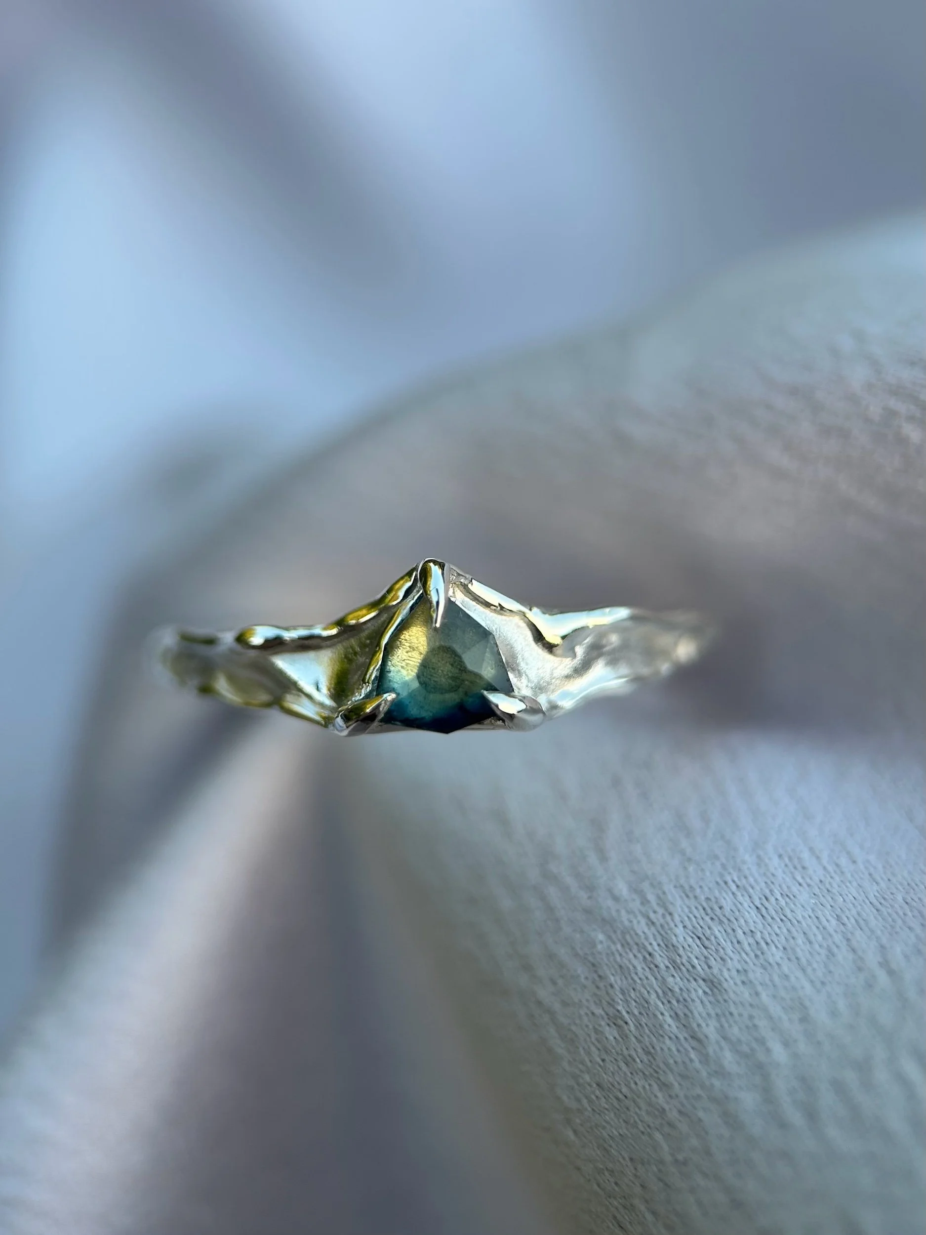 0.52ct rose cut Tasmanian Parti Sapphire set in a 100% recycled solid sterling silver ring