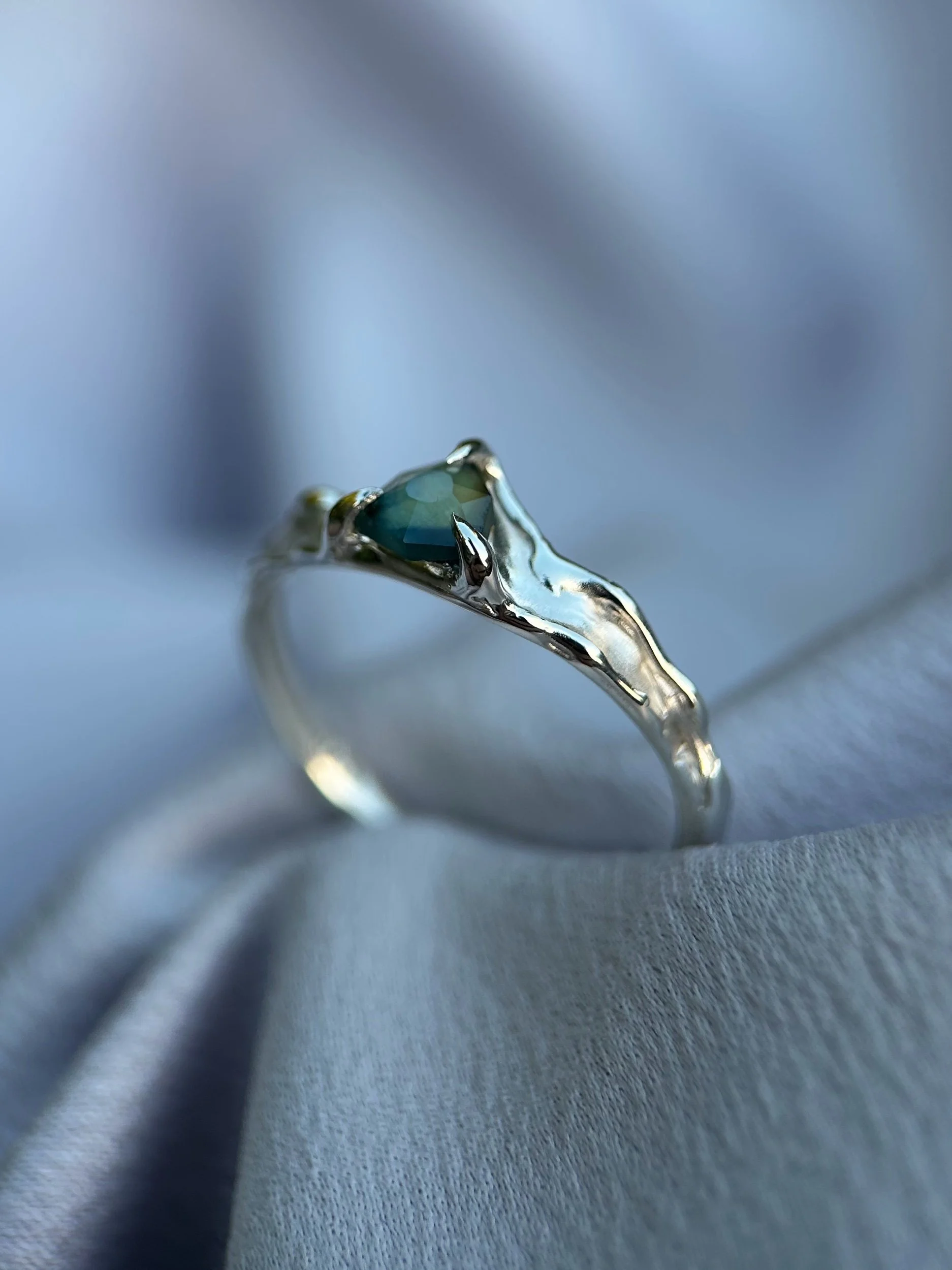 We create our Tasmanian Sapphire jewellery mostly using a technique called “lost wax casting” which gives the pieces an organic / fluid feel which not only compliments the sapphires beautifully (especially the raw stones), but represents the wild rivers of East Coast Tasmania in which we dig for these special gems.